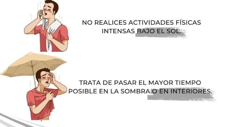 No realizar actividades físicas intensas bajo el sol: El ejercicio extenuante en condiciones de calor extremo puede llevar rápidamente a un golpe de calor, una condición que puede ser peligrosa e incluso mortal. Se sugiere posponer cualquier actividad física intensa o realizarla durante las primeras horas de la mañana o después del atardecer, cuando las temperaturas son más bajas.