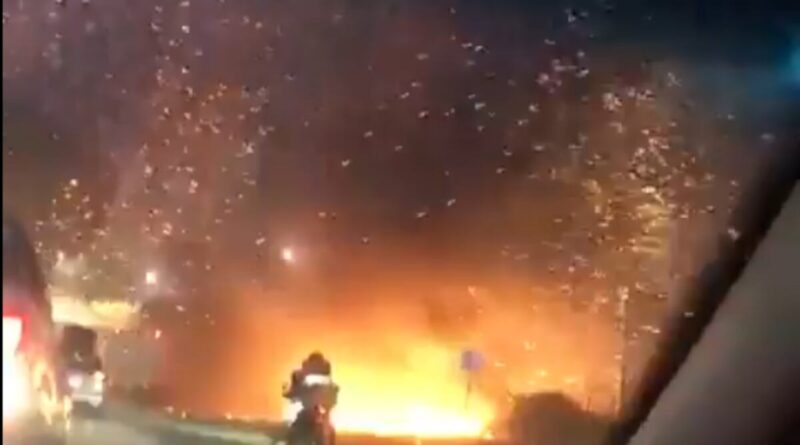 El hecho se produjo sobre las 18:30 hora local, y en videos que se han viralizado en redes sociales se puede observar cómo una camioneta explota segundos después de que comienza a incendiarse.