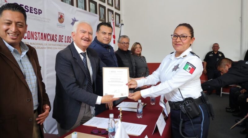 El Ayuntamiento de Chiautempan, a través de la Dirección de Seguridad Pública Municipal, Vialidad y Protección Civil, entregó reconocimientos a 41 elementos adscritos a la corporación por acreditar de forma satisfactoria los cursos referentes al “Registro Nacional de Detenciones” e “Informe Policial Homologado con Perspectiva de Género”, avalado por la Secretaría de Seguridad y Protección Ciudadana (SSPC).