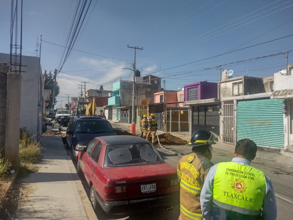 Elementos de la Coordinación Estatal de Protección Civil (CEPC), de la Secretaría de Seguridad Ciudadana (SSC) y del Heroico Cuerpo de Bomberos activaron un protocolo de seguridad en un perímetro de 100 metros a la redonda, por un reporte de fuga de gas natural en la calle Rubí Sur, sin número, en la colonia La Joya de la capital tlaxcalteca.