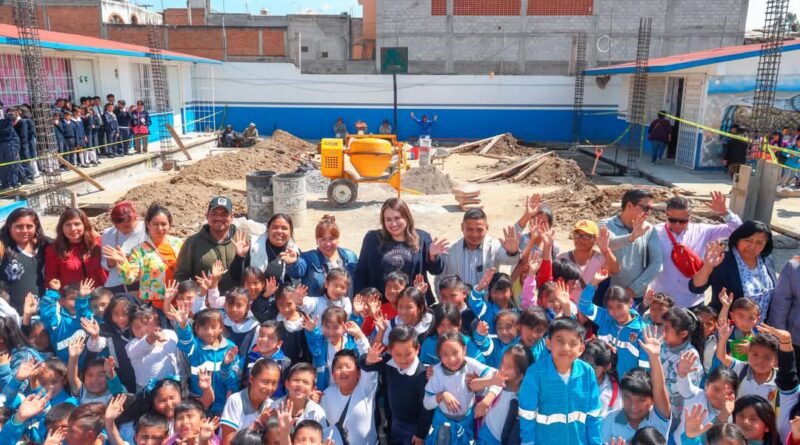 Acude Blanca Angulo a supervisar avance de techumbres en escuelas de Chiautempan