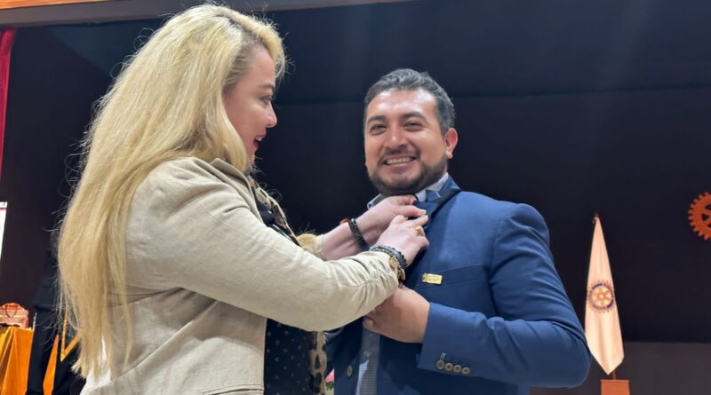 En la ex Cancha 13, el edil abotonó a los 9 nuevos integrantes del Club Rotario, quienes fungirán en acciones y actividades de labor social.