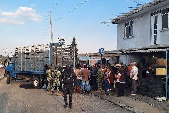 Pobladores de San Cristóbal Zacacalco, en Calpulalpan, agredieron con palos y piedras a elementos de corporaciones de seguridad federales para evitar que ejecutaran una orden de cateo liberada para un inmueble donde se sospechaba el almacenamiento y venta de combustible robado.