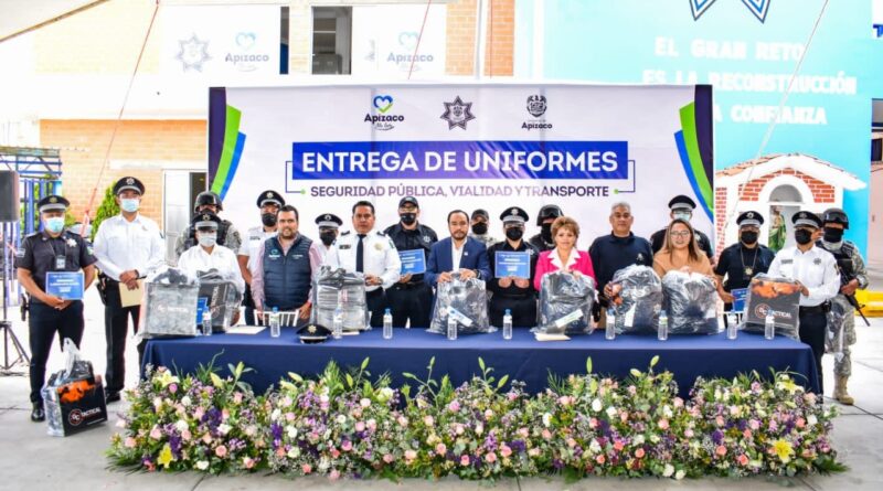 El presidente de Apizaco, Pablo Badillo, encabezó la entrega de uniformes a los elementos de Seguridad Pública, que incluyen botas, camisolas, pantalón, playera, chamarra y fornitura.