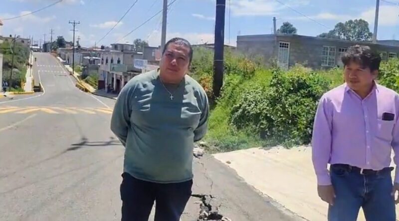 Alcalde de Contla atiende hundimiento en Avenida Emiliano Zapata