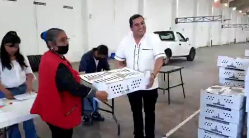 Este viernes, el presidente municipal de Contla de Juan Cuamatzi, Eddy Roldán Xolocotzi, entregó aves de traspatio a los ciudadanos de este municipio.