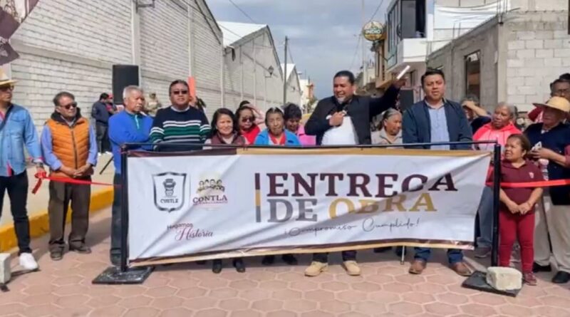 En gira de trabajo, el presidente municipal de Contla de Juan Cuamatzi, Eddy Roldán Xolocotzi, acompañado de los integrantes de su cabildo y vecinos, inauguró la pavimentación y rehabilitación de drenaje y red de agua potable de la calle Gasoducto de la Sección Primera.