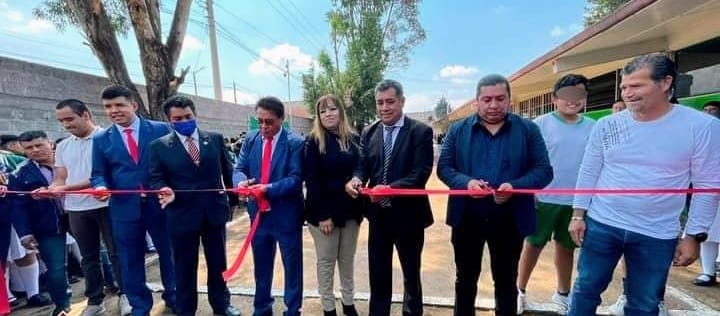 Este lunes, el Presidente Eddy Roldán asistió a la inauguración de la cancha de Petanca Boule en la Escuela Secundaria General Miguel N. Lira del municipio, en compañía de directivos, así como de alumnos para realizar el corte de listón.