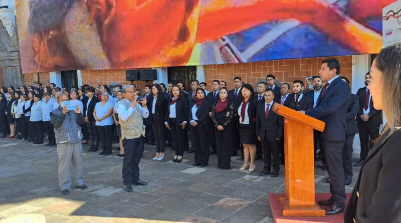 Alcalde de Santa Cruz Tlaxcala encabezó el izamiento de bandera en la capital del estado