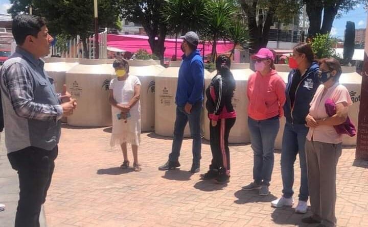 Alcalde de Santa Cruz Tlaxcala entregó tinacos a bajo costo