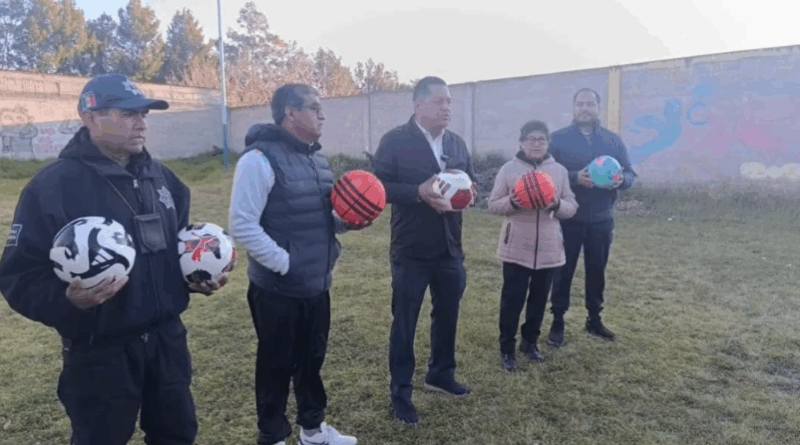 Valentín Meléndez apoya en la construcción de una cancha deportiva en la Secundaria General Juan Cuamatzi y también entregó balones de fútbol y básquetbol