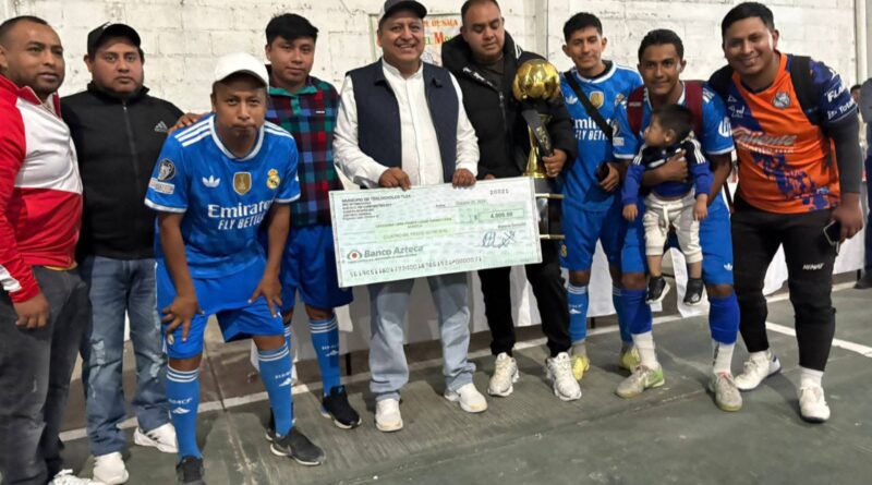 Alcalde de Teolocholco premia a equipos ganadores de torneo de futbol en el Carmen Aztama