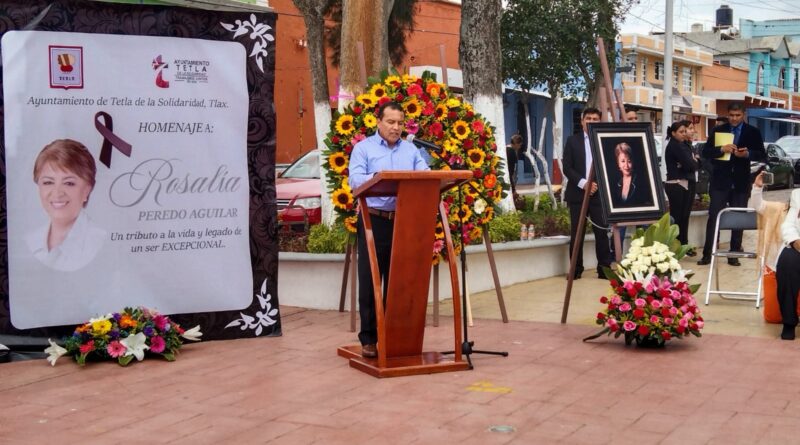 A 8 días del deceso de la ex funcionaria, Ramírez Galicia reconoció su labor y pidió a los presentes no olvidarla y hacerla presente en cada acción que como funcionarios públicos tienen la obligación y señaló: “este es un merecido homenaje a esta gran mujer, una luchadora social incansable, Rosalía Peredo Aguilar, permítanme expresar mi gratitud por la presencia de todos ustedes y por brindar este momento de profundo reconocimiento a la licenciada Rosalía Peredo Aguilar que nos dejó el pasado 20 de junio del presente año, en nuestra amada Tlaxcala”.