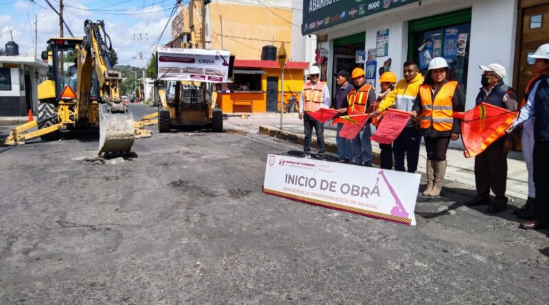 Alcaldesa de Amaxac da banderazo para rehabilitar asfalto en calle Vicente Guerrero