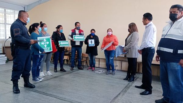 • En esta ocasión la presidenta municipal Nancy Cortés entregó señalética y extintores en las escuelas “Isidro Candia” de Tlacocalpan y el jardín de Niños “José María Morelos”, en la Frontera