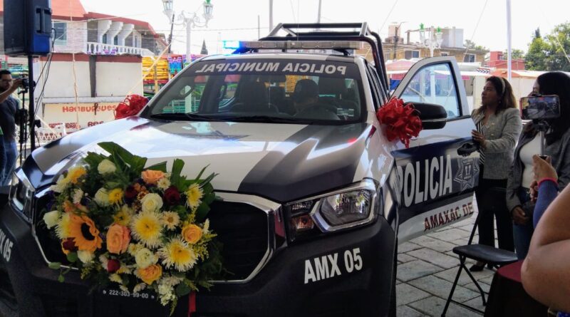 Alcaldesa de Amaxac entregó 2 patrullas y equipo a policías municipales