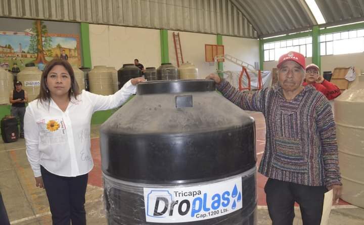 Alcaldesa de Amaxac entregó tinacos a contribuyentes cumplidos