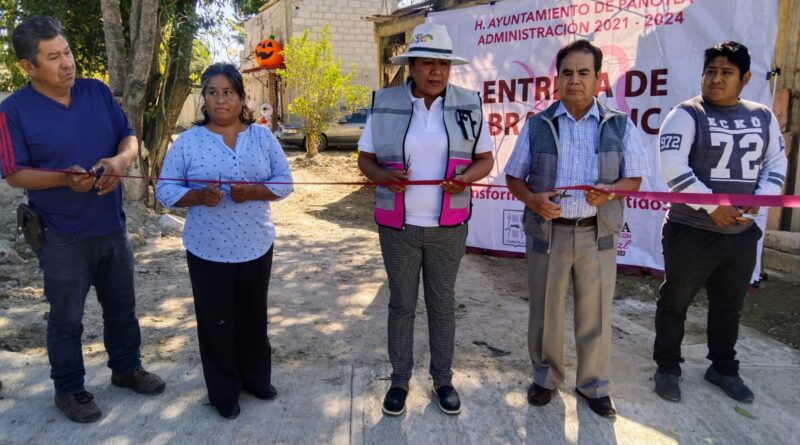 En gira de trabajo, este martes la presidenta municipal de Panotla, Felicitas Vázquez Islas, entregó obra de drenaje y agua potable en la comunidad de Techachalco.