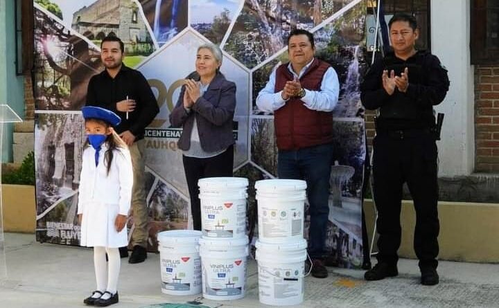 Alcaldesa de Yauhquemehcan apoya a las escuelas con pintura