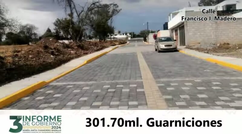Agregó que “se realizaron 82.50 metros lineales de drenaje sanitario en el camino a la planta de tratamiento, Chatla, también se construyeron 301.70 metros lineales de guarniciones en la calle Francisco I Madero, así como la construcción de mil 74.30 metros cuadrados de pavimento en la prolongación Francisco I Madero y calle 2 de Abril”.