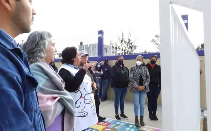Alcaldesa de Yauquemehcan entrega barandal en Jardín de Niños “David Alfaro” de Huacaltzingo