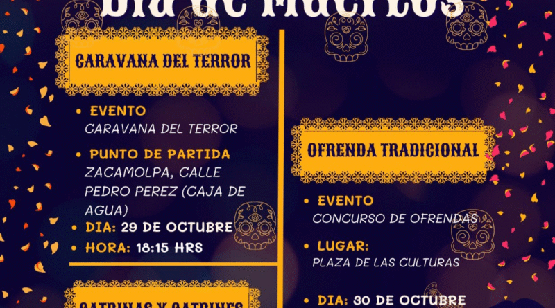Se realizará una Caravana del Terror el 29 de octubre a las 18:15 horas, el punto de partida será en la comunidad de Zacamolpa, calle Pedro Pérez (Caja de Agua).
