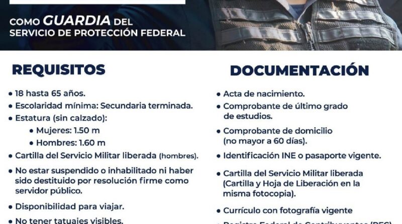 El ayuntamiento de Amaxac de Guerrero, en coordinación con la Secretaría del Trabajo y Competitividad invitan a postularse para “Guardia del Servicios de protección Federal” y participen en el mega reclutamiento que se realizará el próximo 10 de febrero en auditorio del municipio, de las 9 de la mañana a las 5 de la tarde.