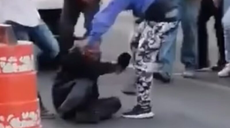 Uno de los guardianes del orden fue pateado, tomado por el cuello y en una maniobra es tirado al piso para que luego le propinaran dos patadas más, mientras sus compañeros se limitaron a presenciar la escena, posterior a esto el oficial se levanta y son separados por un vecino, sin que pudieran aplicar la multa.