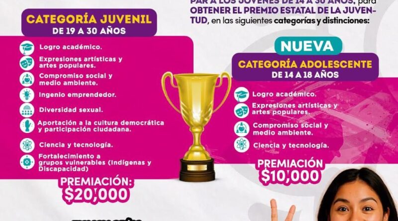 La convocatoria está dirigida a personas de entre 14 y 30 años, quienes podrán participar en dos categorías: Adolescente (14 a 18 años) y Juvenil (19 a 30 años). Se entregarán distinciones en Logro académico, Expresiones Artísticas y Artes Populares, Compromiso Social y Medio Ambiente, Ingenio Emprendedor, Diversidad Sexual, Aportación a la Cultura Democrática y Participación Ciudadana, Ciencia y Tecnología, y Fortalecimiento a Grupos en Situación de Vulnerabilidad (Indígenas y discapacidad)