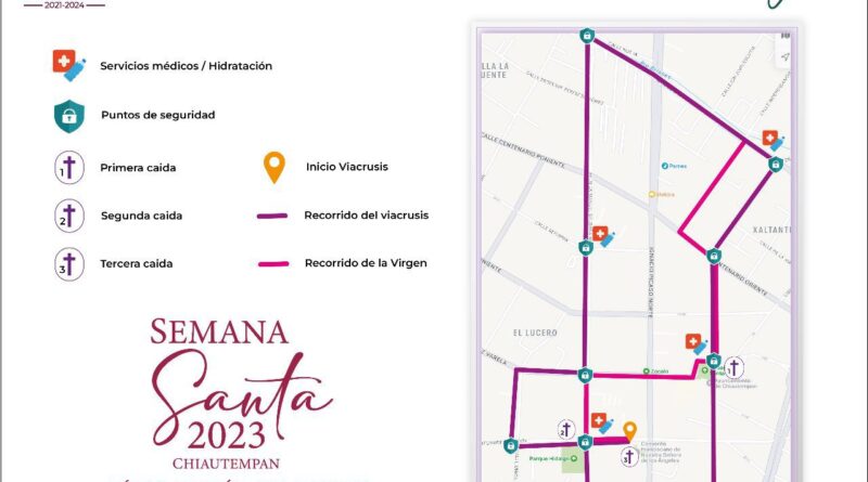 El Ayuntamiento de Chiautempan, informa sobre el cierre de vialidades que se llevará a cabo este viernes 7 de abril con motivo de la procesión del Viacrusis de la Semana Santa 2023.