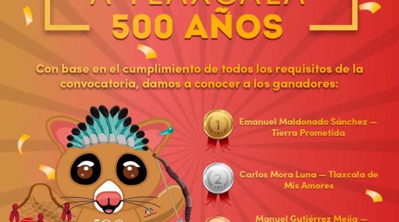 La Secretaría de Cultura del Estado de Tlaxcala anunció a los ganadores del Concurso de Composición “Canción a Tlaxcala 500 Años”, certamen convocado en el marco de las celebraciones por el medio milenio de la fundación de la ciudad capital.