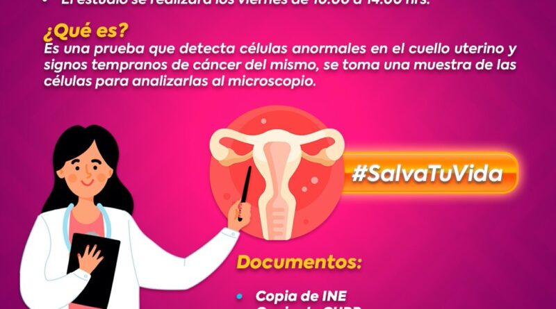 Con el propósito de brindar diagnósticos oportunos de cáncer cervicouterino, el Sistema Municipal para el Desarrollo Integral de la Familia (SMDIF) Huamantla, informó que cada viernes habrá estudios gratuitos de papanicolaou dirigido a todas las mujeres huamantlecas que tengan 25 años en adelante, lo anterior con el objetivo de prevenir enfermedades que pongan en riesgo la vida de las mujeres.
