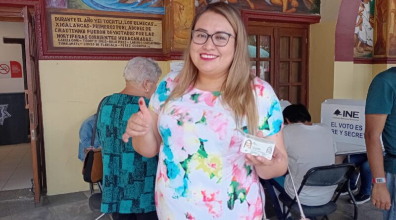 La presidenta municipal de Chiautempan, Blanca Angulo Meneses acudió este domingo primero de junio a la casilla 0139 el cual se ubicó en los portales de la antigua presidencia municipal paraemitir su sufragio en la elección del Poder Judicial.