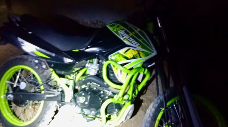 Al hacer una inspección, los elementos policiales notaron que la motocicleta tipo Cross de color verde con blanco y negro fue reportada como robada en la comunidad de Xaxala ante el Servicio de Emergencias 911.