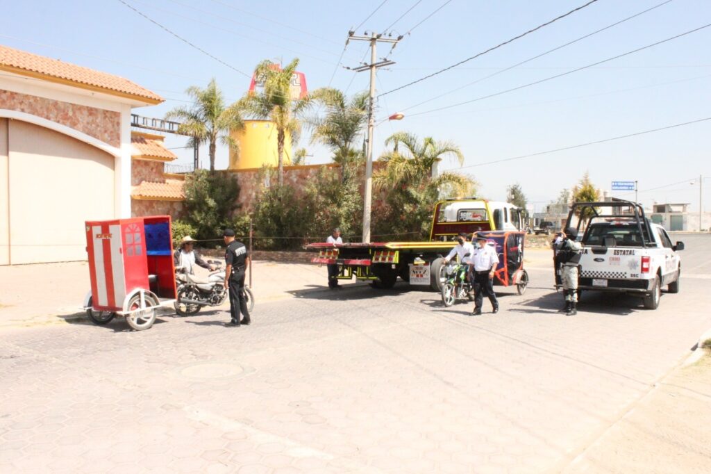Para tal efecto se instaló punto de supervisión sobre carretera federal Tlaxcala-San Martín Texmelucan, esquina avenida del Trabajo, en la comunidad de Santa Justina Ecatepec, municipio de Ixtacuixtla, donde se detectó la prestación del servicio público de transporte mediante motocicleta con remolque adaptado.