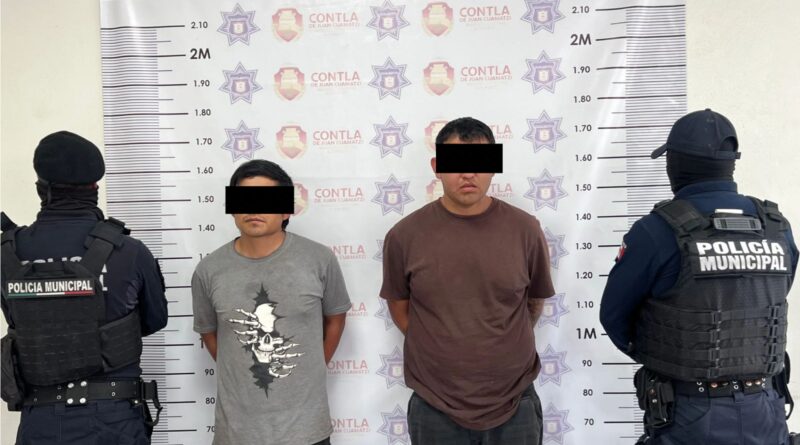 La tarde de este 26 de noviembre, elementos de la Dirección de Seguridad Pública de Contla aseguraron a dos hombres en la Sección Séptima, luego de que un ciudadano reportó que presuntamente se encontraban consumiendo estupefacientes frente a un establecimiento