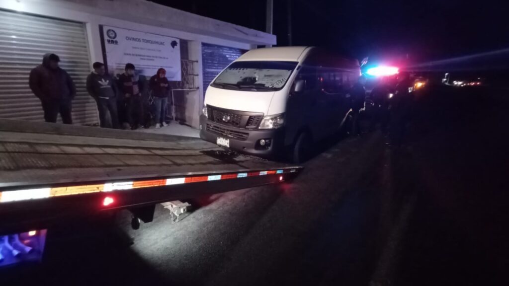 Durante una acción de patrullaje preventivo, los efectivos de Seguridad Pública, delegación Apizaco, observaron una unidad blanca marca Nissan, tipo NV350, del servicio público con un neumático trasero del lado izquierdo ponchado.