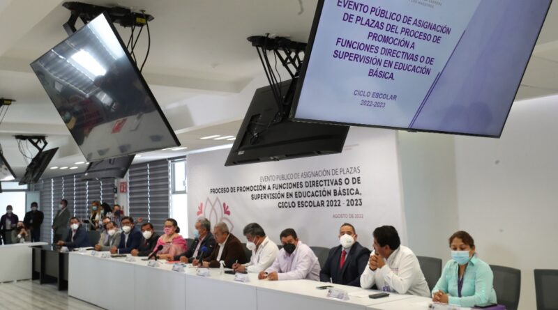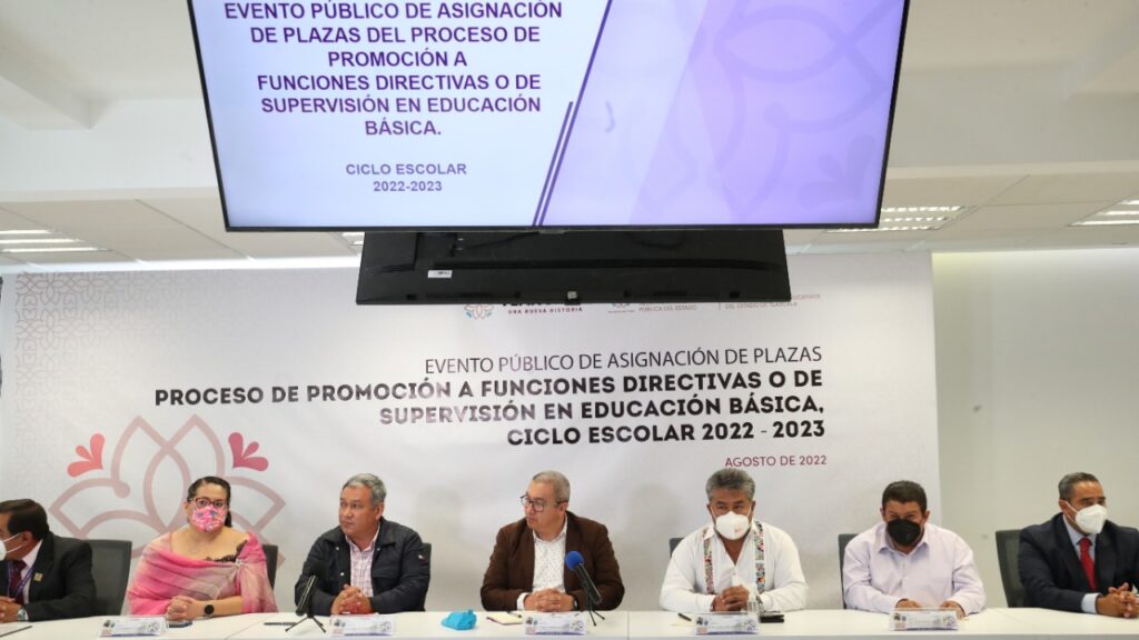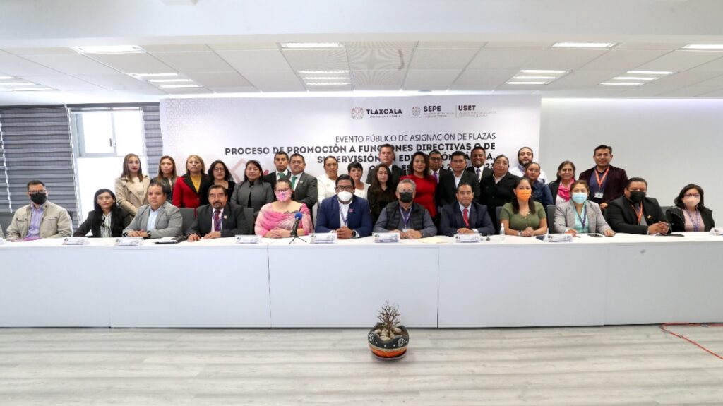 La Secretaría de Educación Pública del Estado (SEPE) y la Unidad de Servicios Educativos de Tlaxcala (USET) realizaron el evento público de asignación de 16 plazas de promoción a funciones directivas o de supervisión, en educación básica para el ciclo escolar 2022-2023, en la sala “Lucio Cabañas Barrientos” de oficinas centrales.
