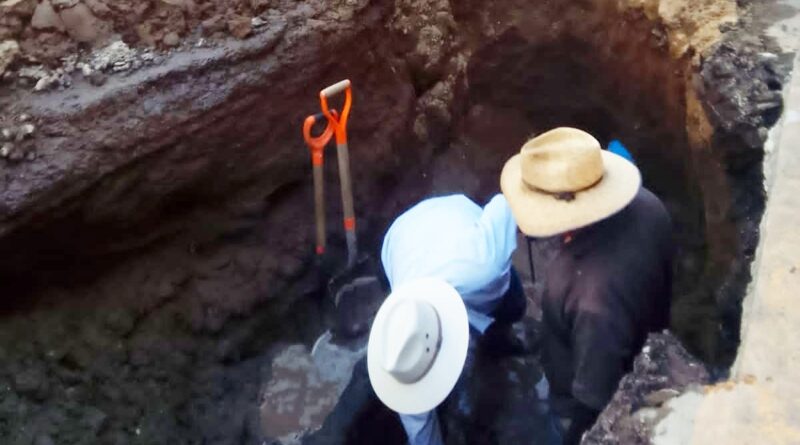 Para realizar los trabajos de reparación, elementos de la Dirección de Obras Públicas se dieron a la tarea de entrar con la retroexcavadora para reemplazar el material que estaba contaminado, esto debido a una descarga domiciliaria de una carnicería que estaba bloqueada, por lo que las aguas servidas ya habían encontrado la forma de salir, generando una caverna que pasó por encima de la línea del drenaje que se encontraba a un metro de profundidad.