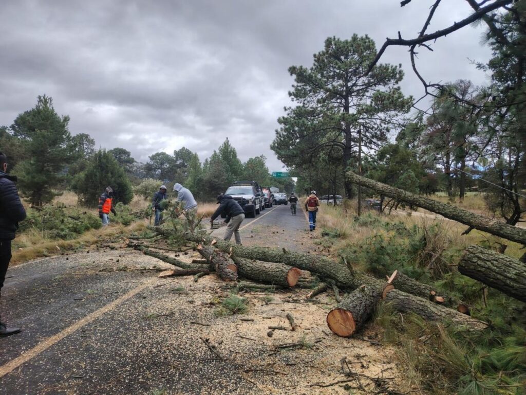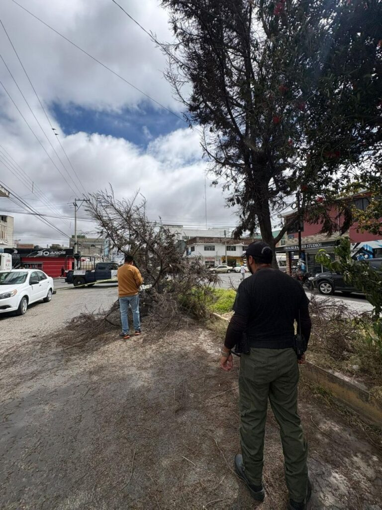Asimismo, en Apizaco, se registró la caída de un árbol sobre la calle Jesús Carranza, donde se realizaron maniobras de corte y acordonamiento; y en Santa Apolonia Teacalco, otra caída de árbol, en la carretera Tocatlán–Teacalco, efectuándose labores de limpieza.