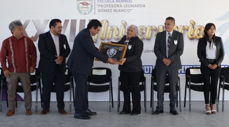Autoridades educativas conmemoraron el XXXIII Aniversario de la Escuela Normal “Profesora Leonarda Gómez Blanco”, institución clave en la formación de docentes en Tlaxcala que actualmente cuenta con una matrícula de 403 estudiantes y un equipo de 33 docentes, personal de apoyo y administrativo.