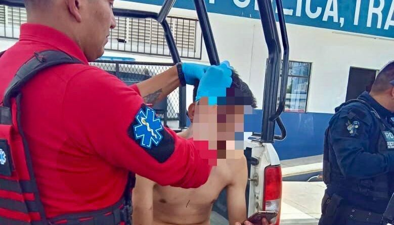 De acuerdo al reporte, los elementos valoraron a Luis N., quien presentaba una herida lacerante en la región frontal.