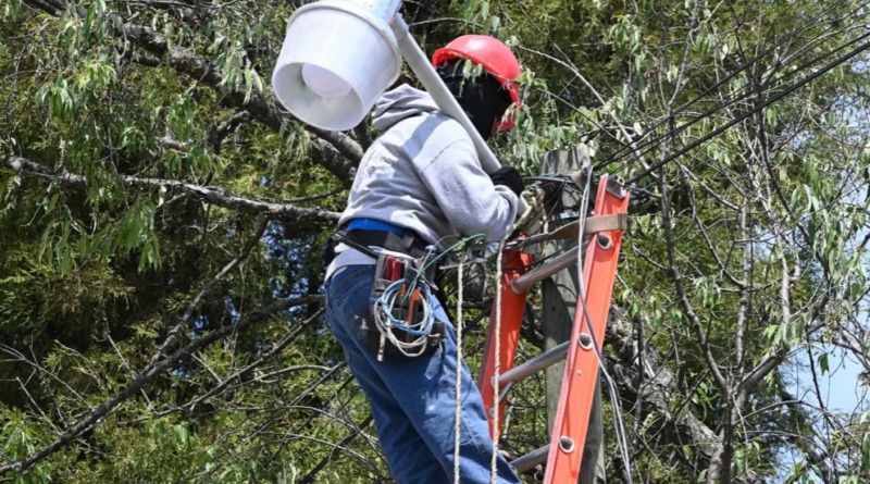 Con estas labores se fortalecen las condiciones de visibilidad y seguridad para quienes transitan por esta zona. Trabajos de alumbrado en San Miguel Contla.