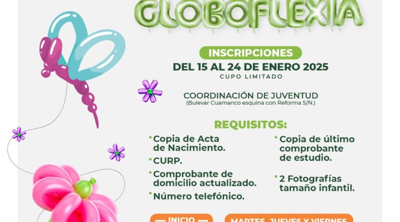 jóvenes del municipio a inscribirse en el curso de Globoflexia, que iniciará el