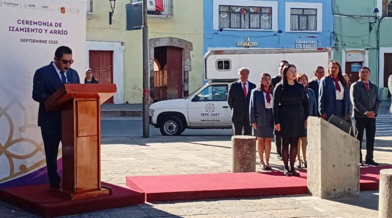 Ayuntamiento de Santa Cruz Tlaxcala encabezó el izamiento de bandera en la capital del estado