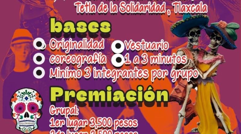 El Ayuntamiento de Tetla de la Solidaridad que preside el alcalde, Andrés Ramírez Galicia, ha organizado el concurso de baile, “La Muerte también Baila”, porque el baile es un arte que debemos impulsar, por ello con motivo de nuestras festividades de “Día de Muertos”.