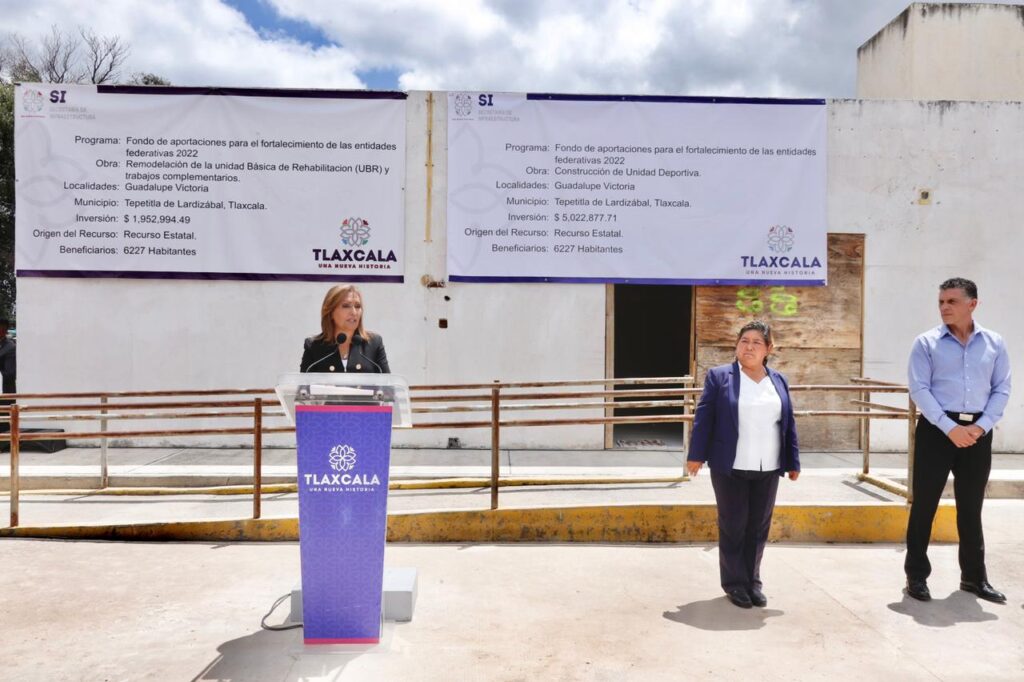 La gobernadora Lorena Cuéllar Cisneros encabezó el banderazo de arranque para la remodelación de la Unidad Básica de Rehabilitación (UBR) y la construcción de una unidad deportiva en la comunidad de Guadalupe Victoria, municipio de Tepetitla, con lo que beneficiará de manera directa a más de 6 mil 200 habitantes.