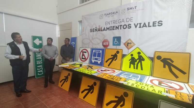La Secretaría de Movilidad y Transporte (SMyT) entregó 35 señalamientos viales de tipo restrictivo, informativo, preventivo, de destino e información general a las comunidades de El Rosario, municipio de Tlaxco, y Matlalohcan, de Tetla de la Solidaridad, cuya inversión total fue de 133 mil pesos.