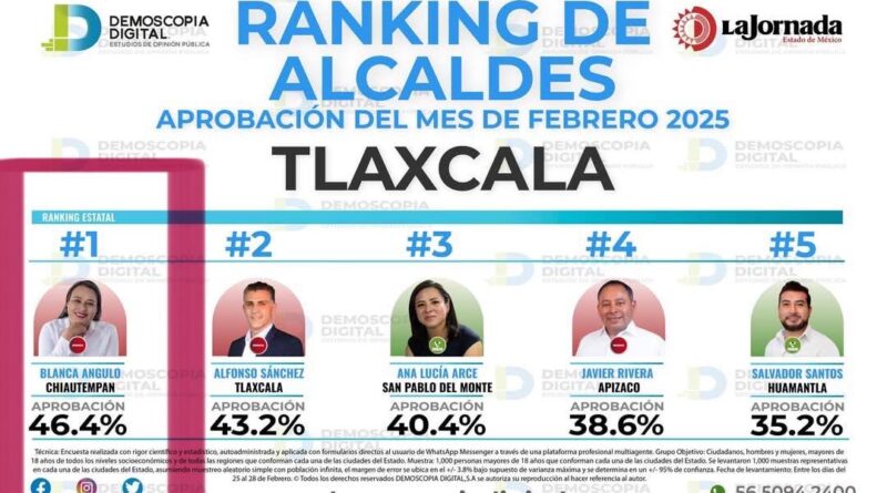 rankin de aprobación de alcaldes de Tlaxcala de acuerdo a la encuesta elaborada por la empresa