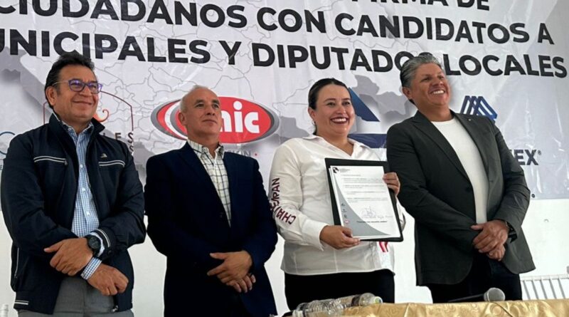 La candidata de Morena a la presidencia municipal e Chiautempan, Blanca Angulo Meneses participó en la Exposición de Propuestas y Firma de Compromisos Ciudadanos que fue convocado por las cámaras que integran la Alianza Empresarial del estado de Tlaxcala.